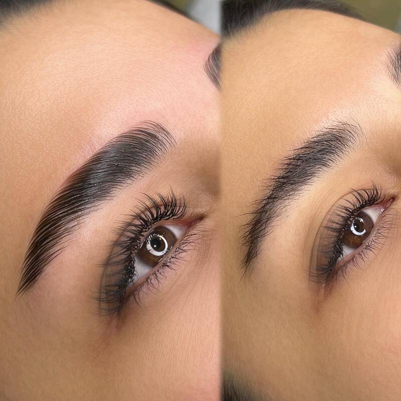 ClicA brow lift in makeup enhances fullness and definition using gel, soap, or lamination